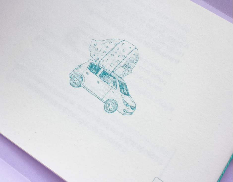 Se imprimió y encuadernó en el taller de autopublicación gráfica La Diabla, un programa de TEOR/éTica en colaboración con Adrian Flores Sancho. Esta primera edición de 25 ejemplares se imprimió en una duplicadora RISO modelo SF5054